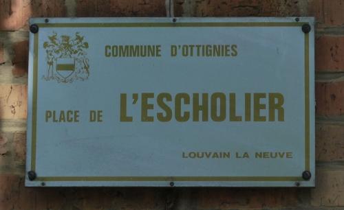 La « place de l’Escholier » porte un nom archaïque qui fait allusion à l’ancienne tradition universitaire. Ce fut également le titre d’un journal des étudiants francophones de l’Université de Louvain.