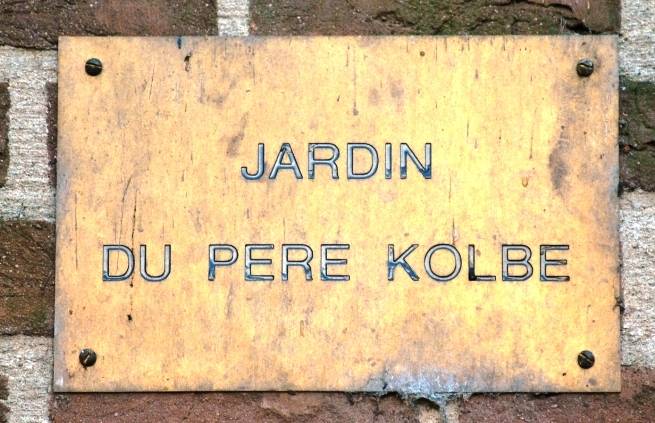 C’est à la demande de l’Université, qui souhaitait honorer par l’érection d’une statue la mémoire du Père Maximilien-Marie Kolbe (1894-1941), célèbre franciscain polonais mort à Auschwitz en 1941 et canonisé en 1982, que l’espace vert situé entre l’église Saint-François et la rampe du Val, propriété de l’Université, a reçu ce nom [PV OL 21 mars 2005]. Une statue y a effectivement été érigée en contrebas du parvis Saint-François.